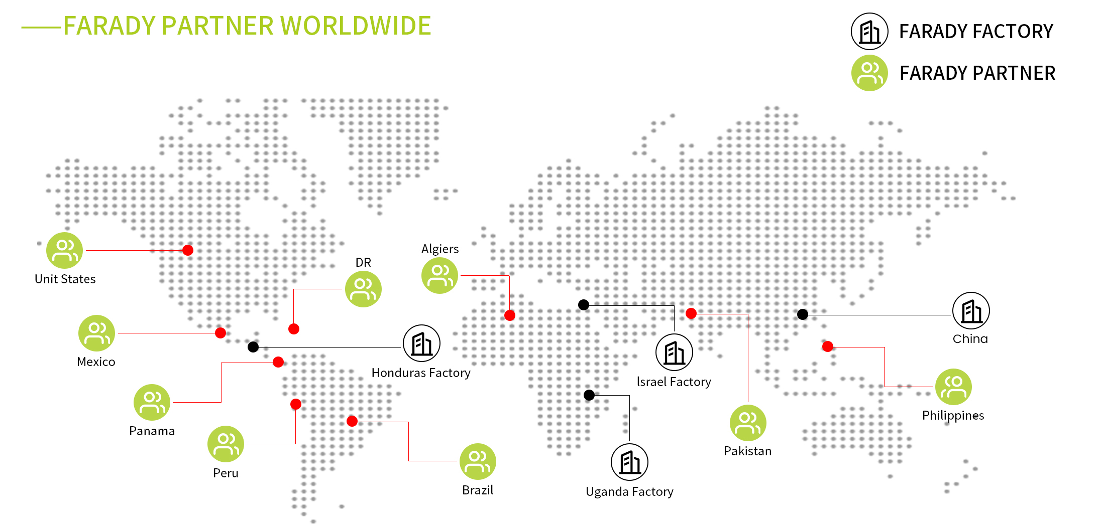 Farady customers are spread all over the world, and now our products have been sold to over 86 countries worldwide. Farady South Africa is equally committed to providing high-quality products for Africa's top companies.